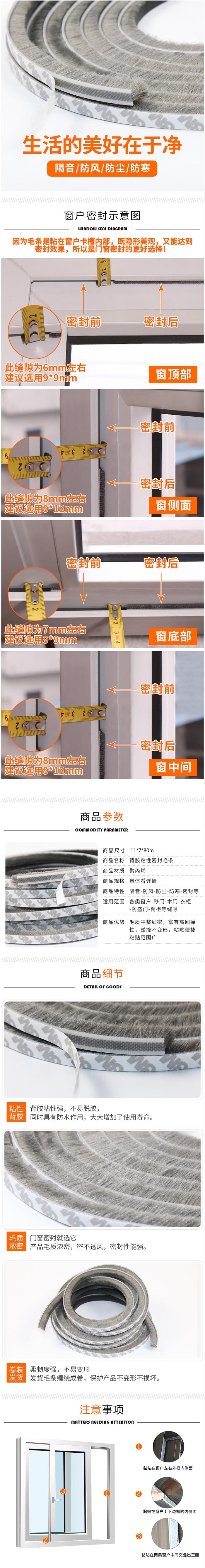 鋁合金門窗密封條塑鋼窗戶保溫隔音自粘型玻璃木門縫防風保暖毛條11*7*80M